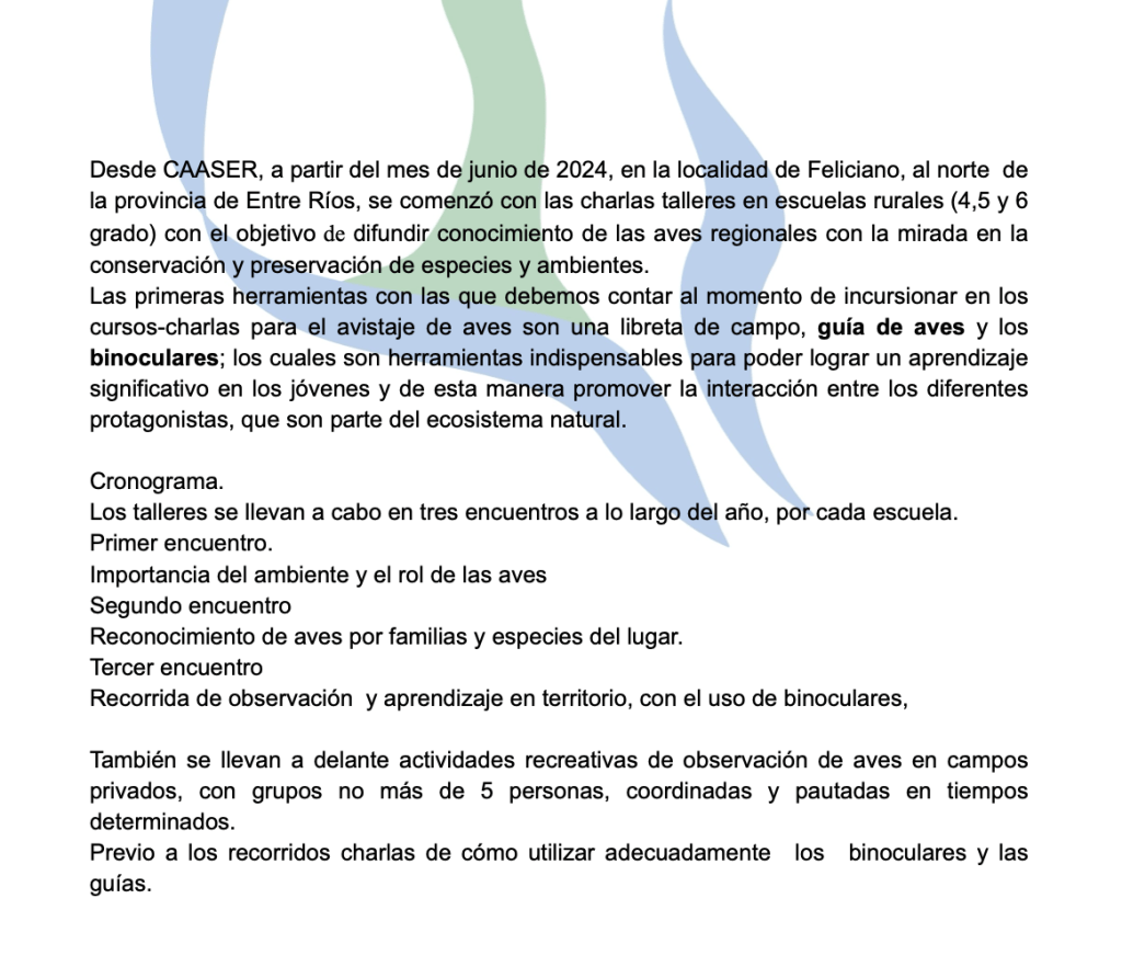 Felicitamos al «Club Amigo de las Aves Silvestres de Entre Ríos» por su encomiable iniciativa y su labor continua en la formación de nuestros jóvenes. Nos sentimos sumamente orgullosos de poder acompañarlos en este valioso esfuerzo.